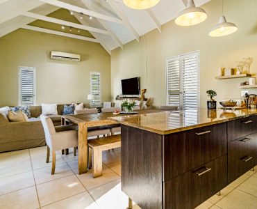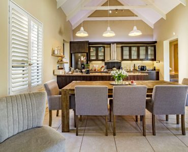 A glass-framed entrance hall welcomes you into a light, bright, and airy space. The open-plan living area flows effortlessly into a spacious kitchen with a separate scullery and a lovely sense of warmth and homeliness. High exposed trusses add character and volume to the living area, complemented by a beautiful feature fireplace — perfect for cozy evenings.